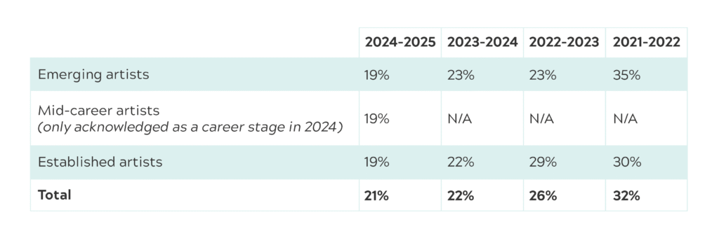 Here’s a table showing the award rates of emerging, mid-career, and established artists within the Create grant: